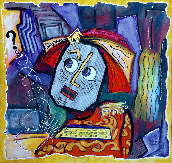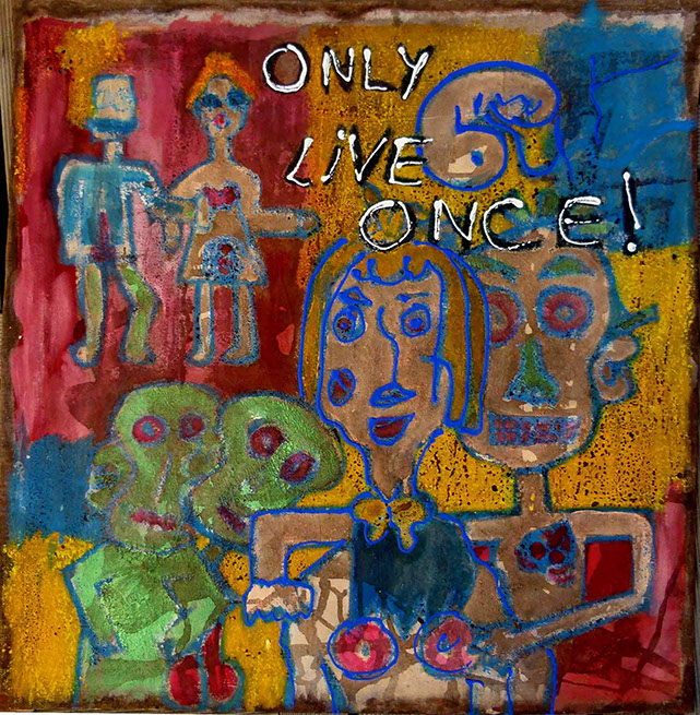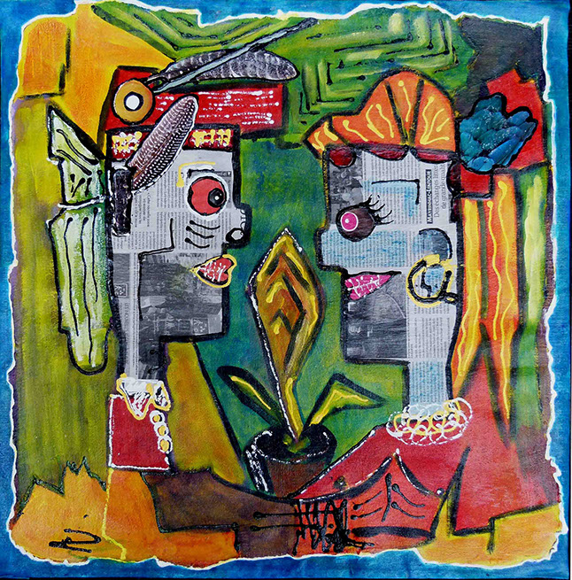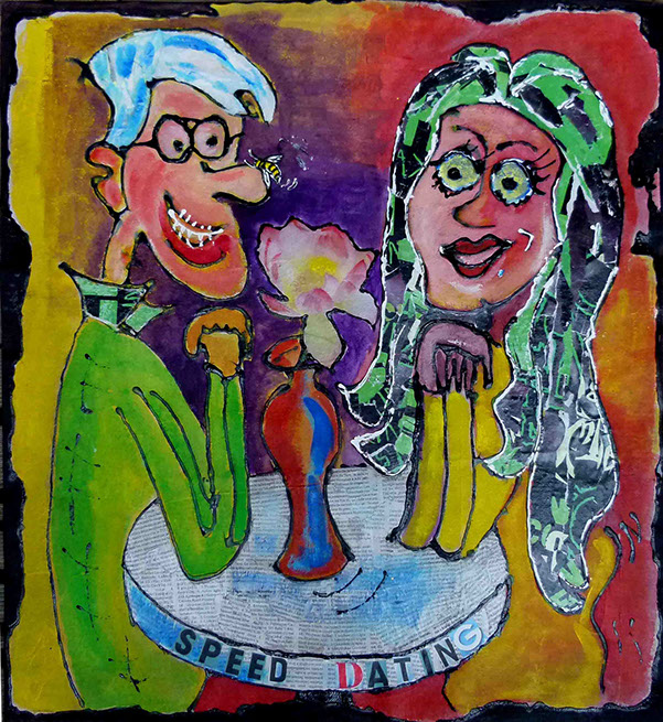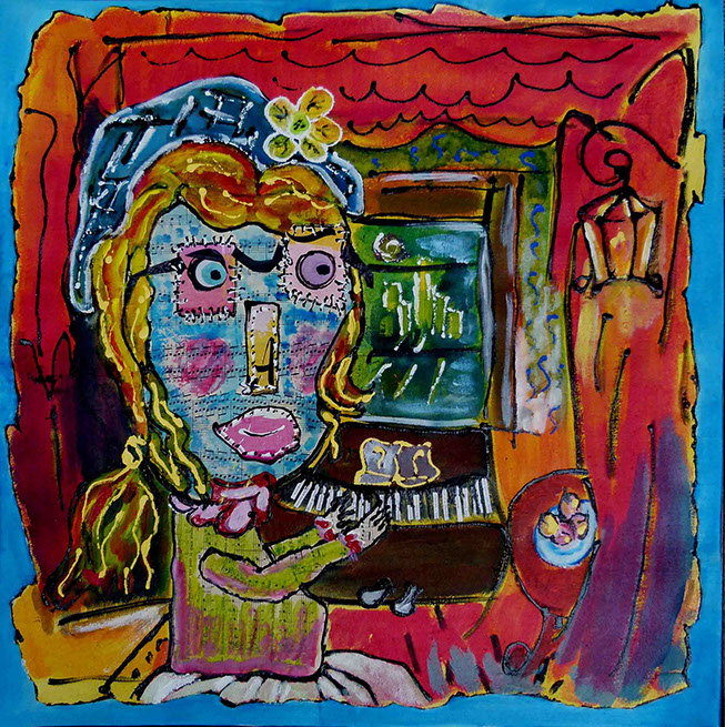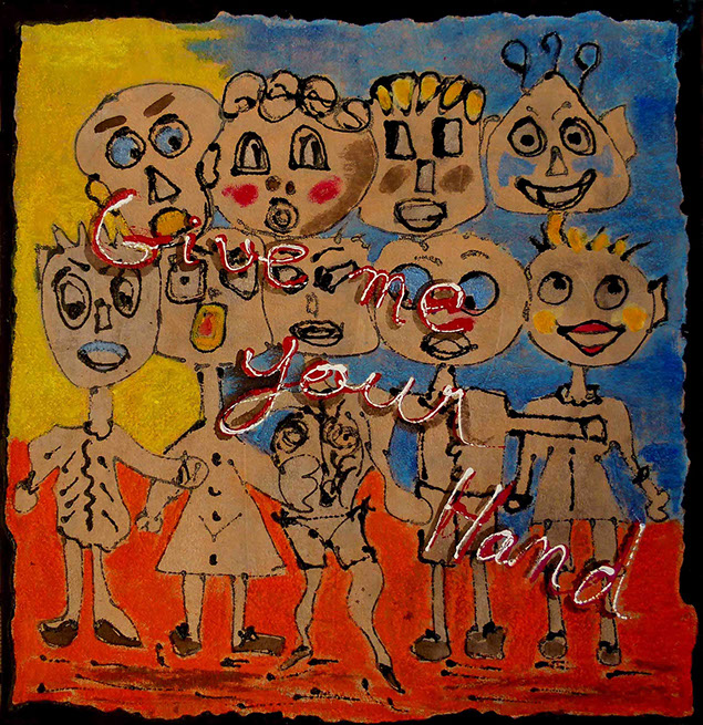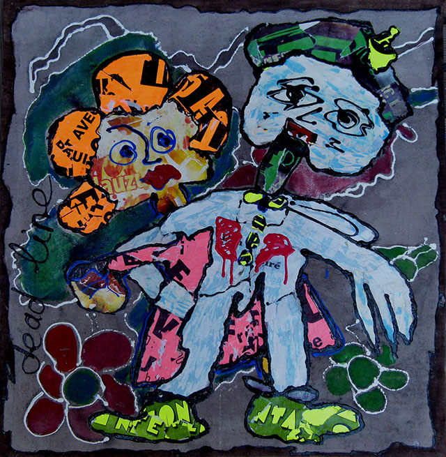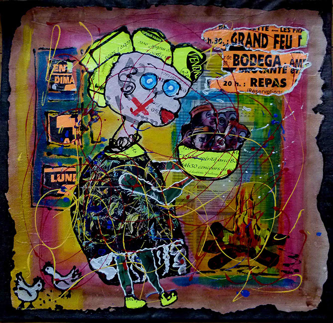 Cette série pourrait être qualifiée de peinture élémentaire , mettant en œuvre à la fois du collage de papiers récupérés et de dessins simples ou simplifiés aux couleurs brutes.