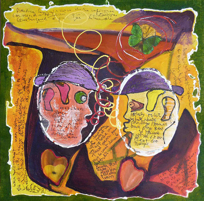 Les mots collés complètent parfois ce que le dessin n'a pas pu dire.